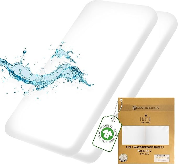 Lilly Belly Waterproof Cot Sheets 120x60 Fitted | Cot Mattress Protector 120 x 60cm Next to Me Crib Sheets | Cotbed Fitted Sheet | Complete Protection and Comfort for Your Baby's Crib.