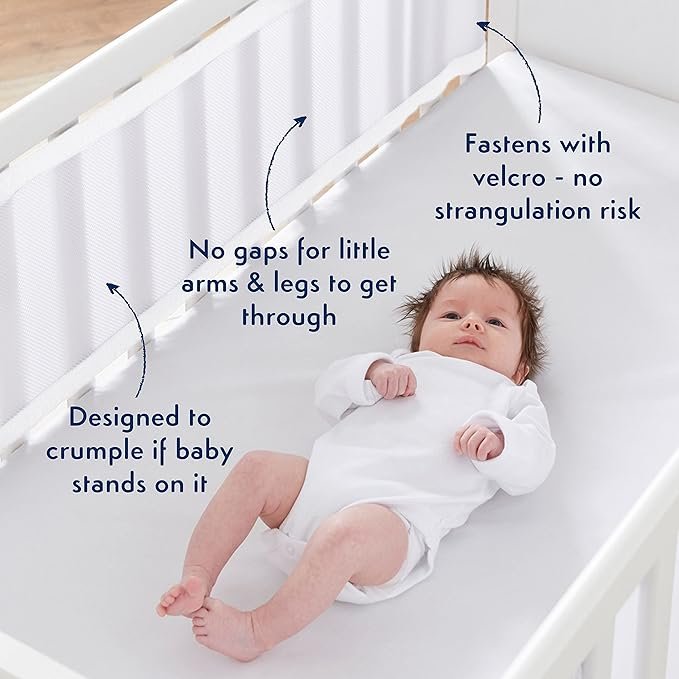 Temperature Regulation - the innovative 3D mesh fabric ensures constant air flow and circulation to aid in keeping baby at a safe temperature all night long. A cot bumper is one of your newborn essentials.