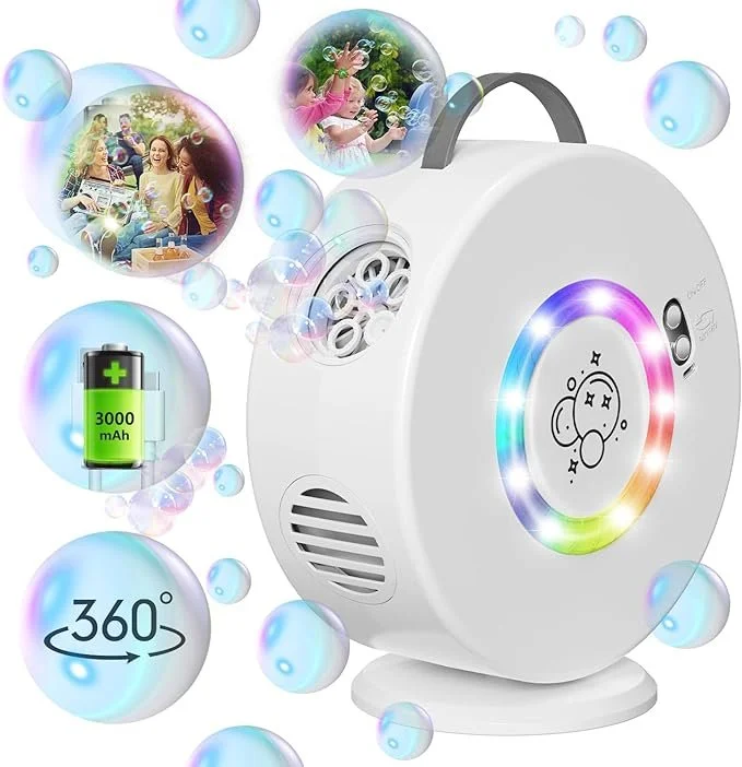 LED Bubble Machine, Portable 90°/360° Rotate Bubble Blower for Kids, Rechargeable Bubble Machine Bubbles Toys for Kids, Automatic Bubble Maker Toy