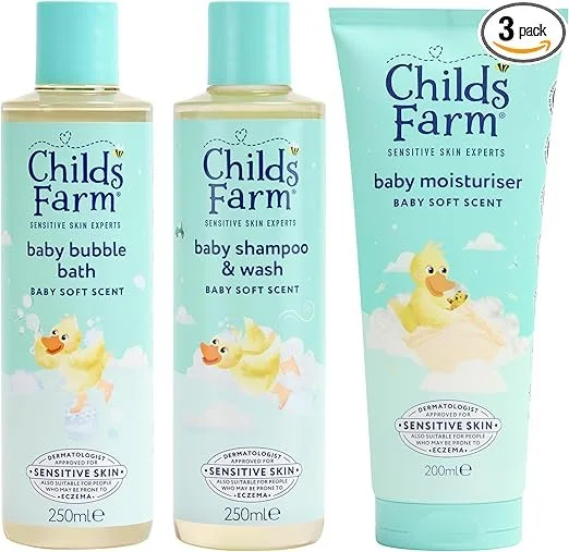 Childs Farm Baby Regime Bundle | Bubble Bath (250ml), Shampoo & Body Wash (250ml) and Body Moisturiser (200ml) | Baby Soft Scent | Suitable for Newborns with Sensitive, Dry, Itchy Skin