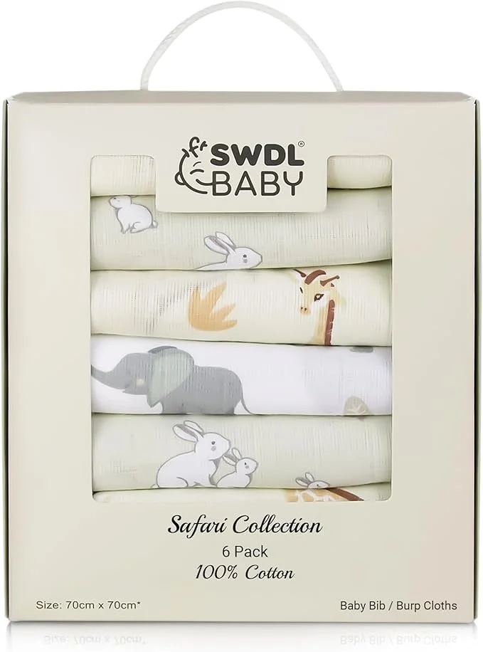 Large Baby Muslin Cloths 100% Cotton Muslin Squares Pack of 6 70 x 70 cm Safari Edition