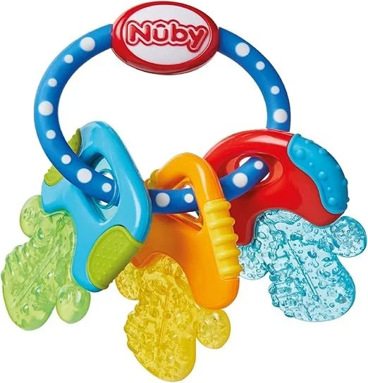 SOOTHING TEETHER – Nuby's Icy Bite Keys Teether has multiple teething surfaces to help relieve the discomfort of sore and tender gums. Advised for younger babies around 3 months of age with the on-set of teething